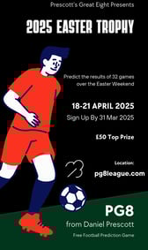 For this season, the top 2 players will be promoted to Season 4's Platinum League (2025/26) with the winner also picking up a trophy. The next 6 eligible players will enter play offs to then confirm 3 more players Platinum League status next season. This game will be running on our brand new app with football friend Daniel Waddington completing fixture selection and results updating duties along the way.