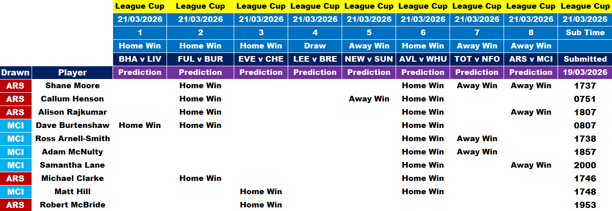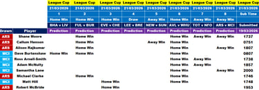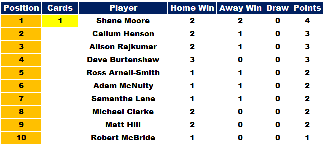 In the end the drawn team made no difference as Shane predicted more correct results than anyone else.