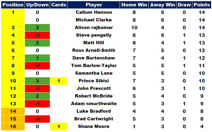 This means players will predict game results over 7 rounds throughout the entire competition so all potentially have a chance of winning.